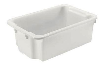 Rotary stacking container 3172 with curved lips, matt-white, closed with drainage holes at the front end